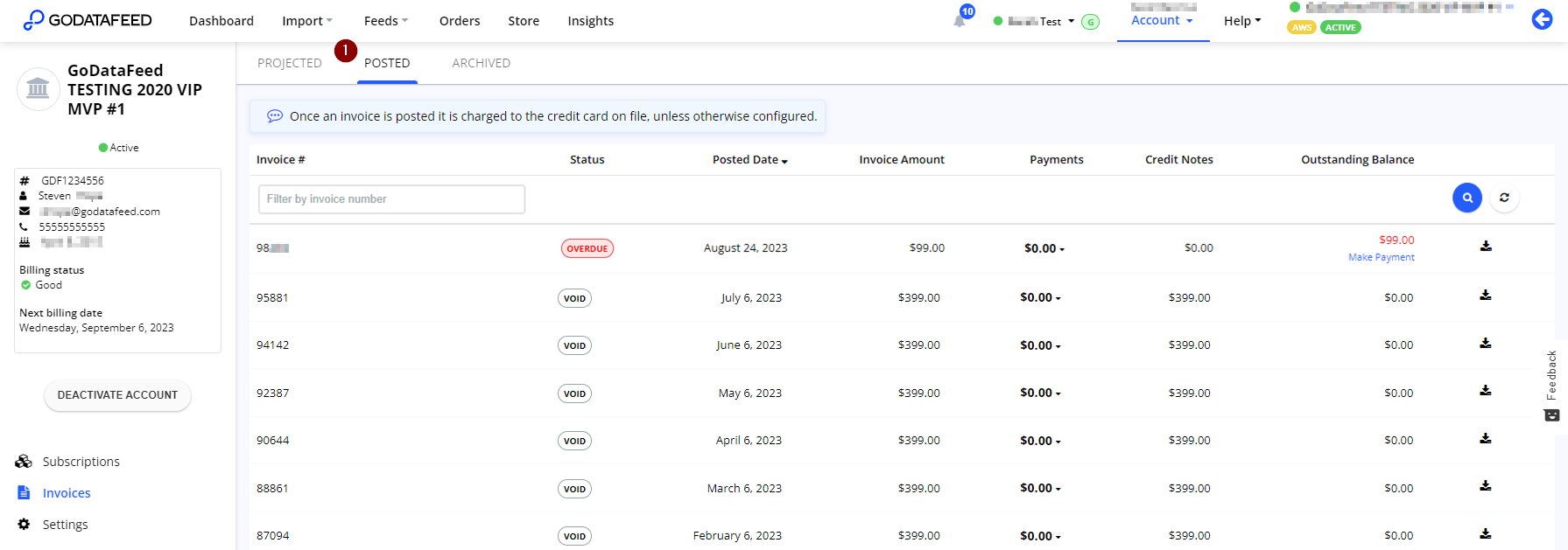 - Once logged in, go to Account > Invoices > Posted (at the top).