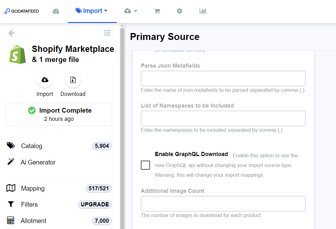 GoDataFeed will automatically switch to GraphQL for all customers on March 31st 2025. Your import might fail if your credentials have not been updated recently.